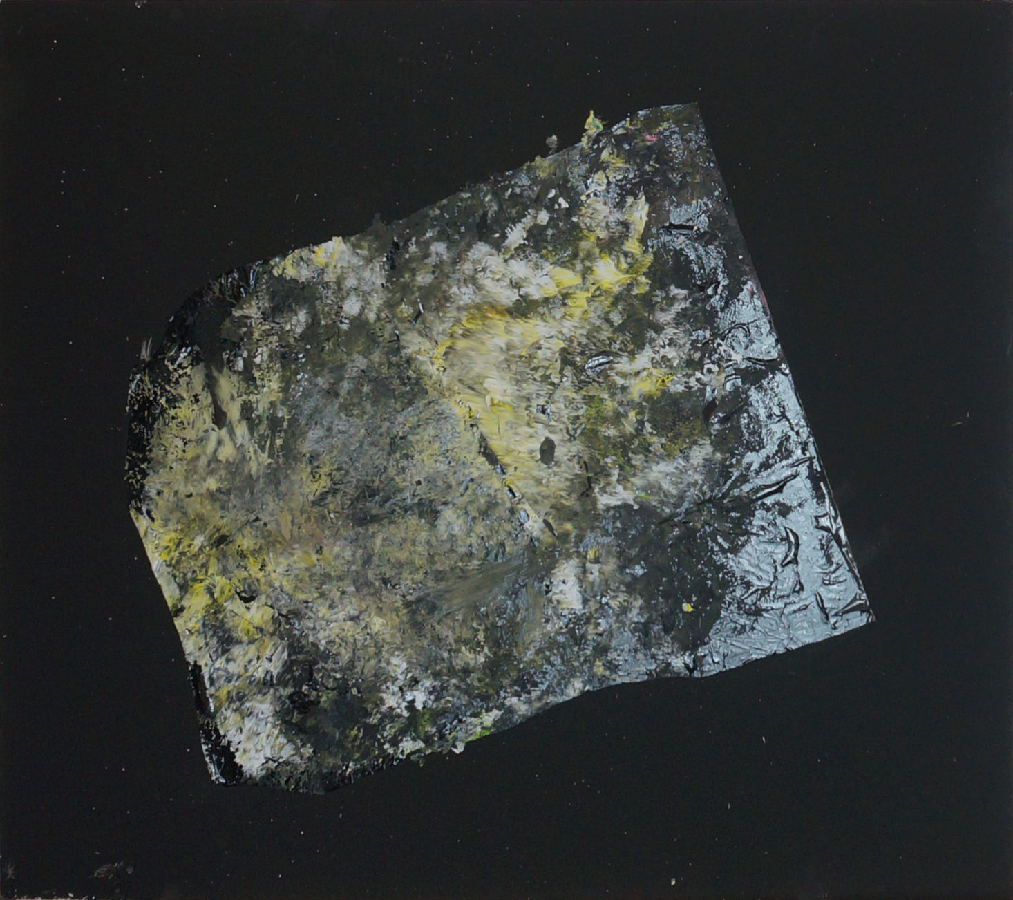 o.T., 2020, Acryl, Folie auf Holz, 34x38 cm